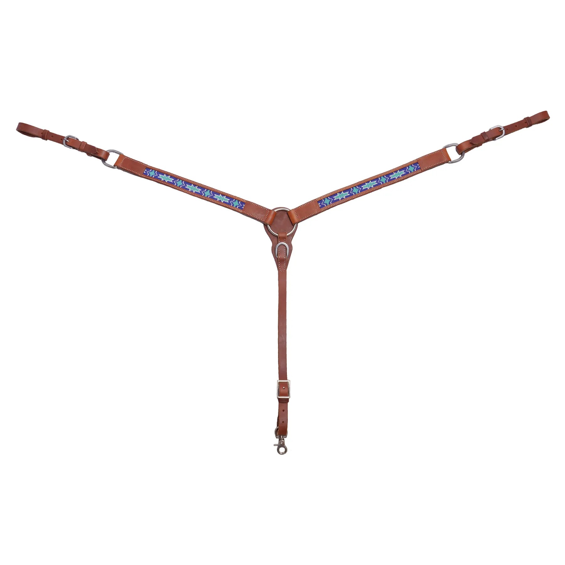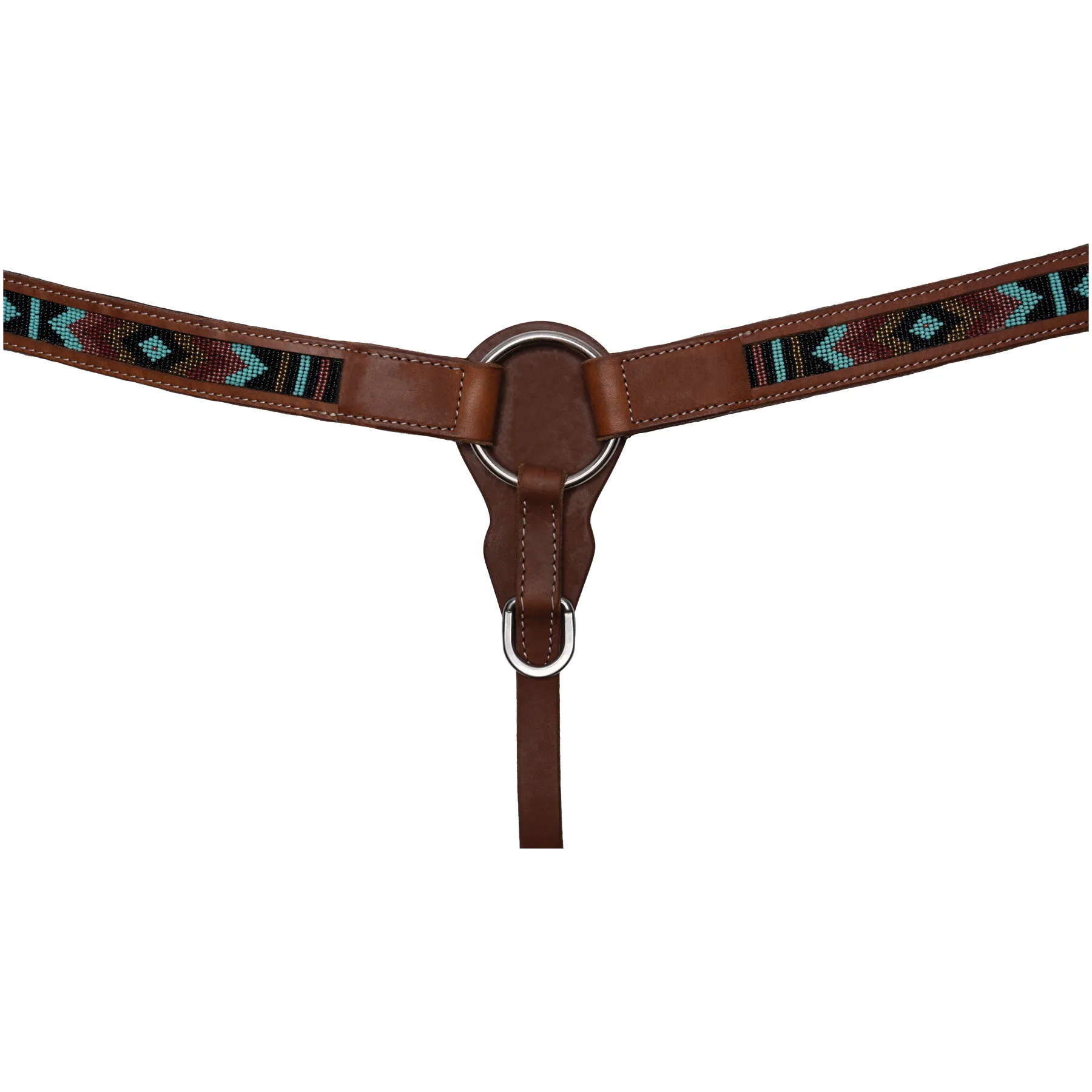 Ride in style with the very attractive Double S Beaded Breastcollar. The breast straps are hand-beaded in an eye-catching pattern that you’ll love when on the trail, at a show, or schooling at home. Remember to grab the matching headstall to complete the look.