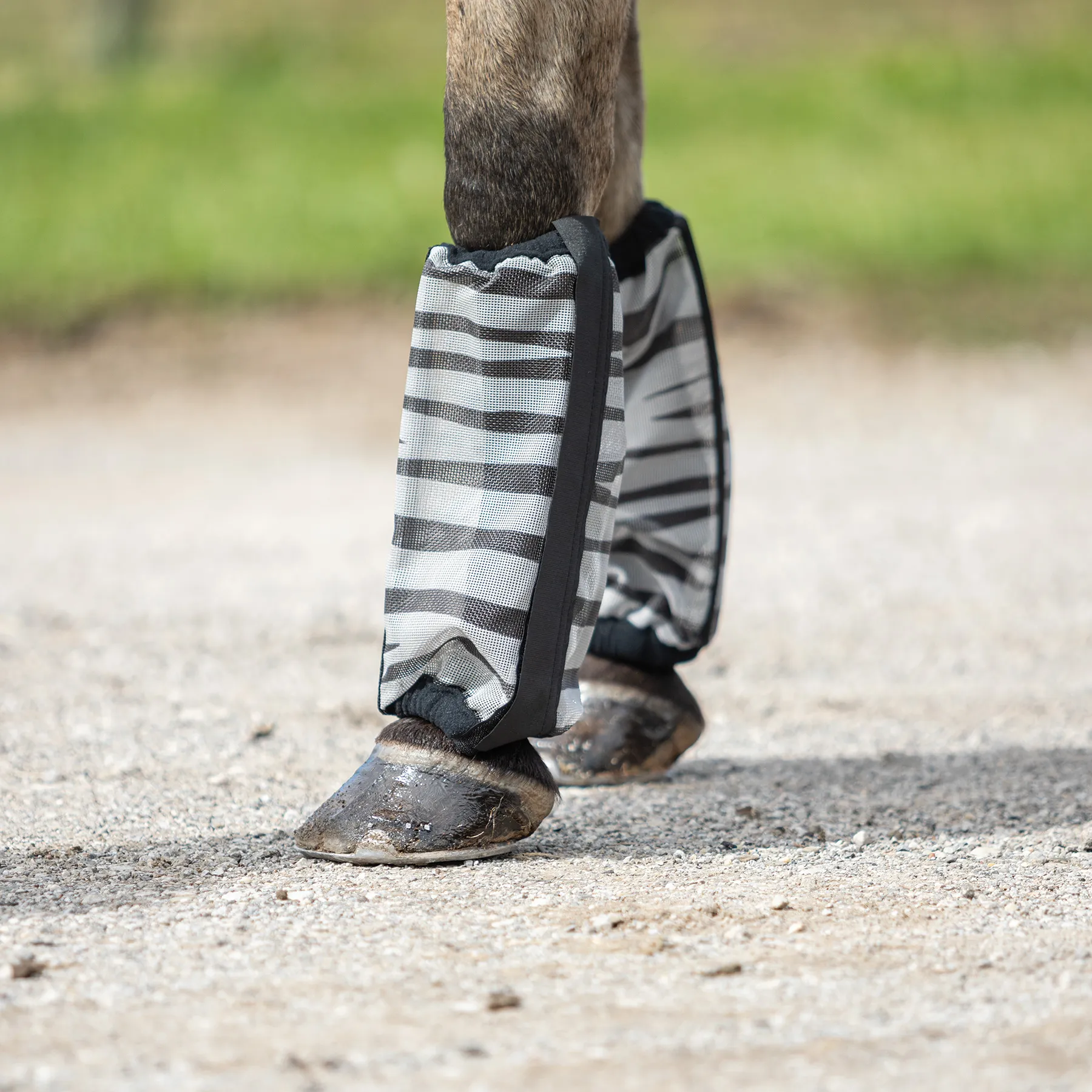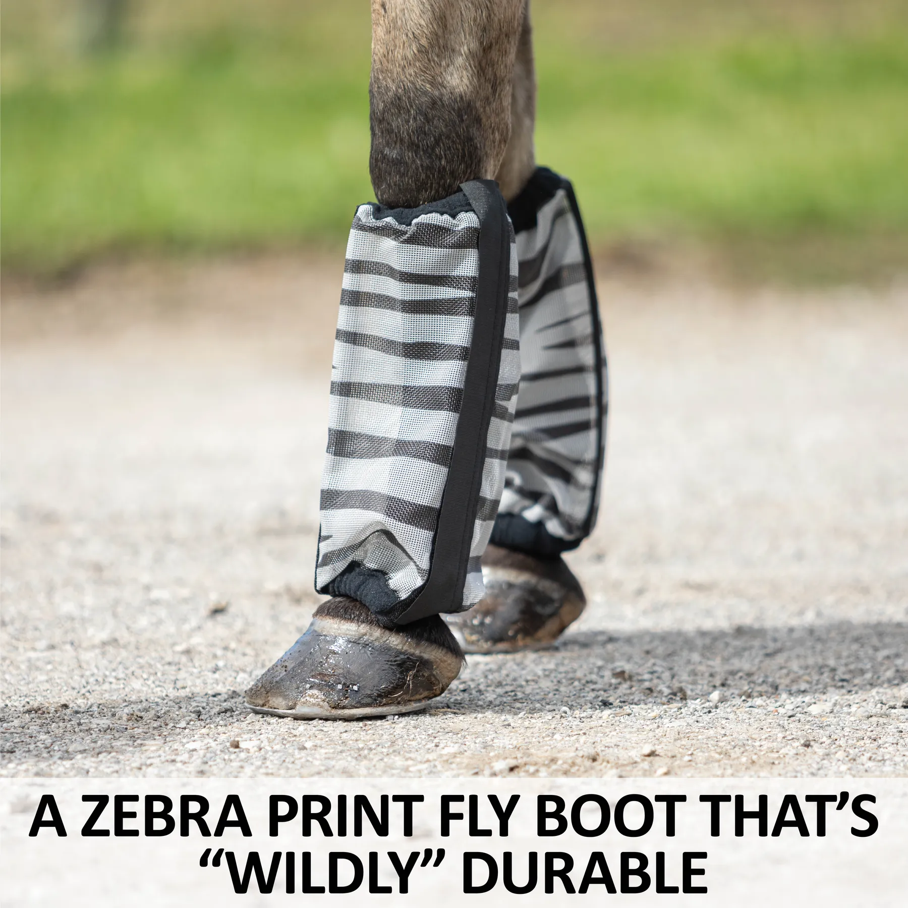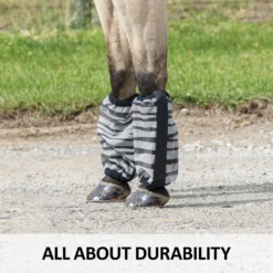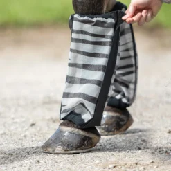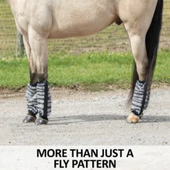 Time to get wild with the Dura-Mesh Non-Fitted Zebra Fly Boots – set of 4! These durable mesh fly boots protect your horse’s legs, covering the bottom of the knee to the coronet band and reducing stomping. But, the real game changer here is the zebra pattern, known to confuse flies and keep them from landing on your horse. Plus, with 70% UV protection, fleece lining for added comfort, hook and loop full-length closure, and flexible stays to prevent slouching, you’ll have a set of zebra fly boots that are fun AND practical. Comes as a set of 4. Don’t forget the matching Zebra Fly Mask and Zebra Fly Sheet.