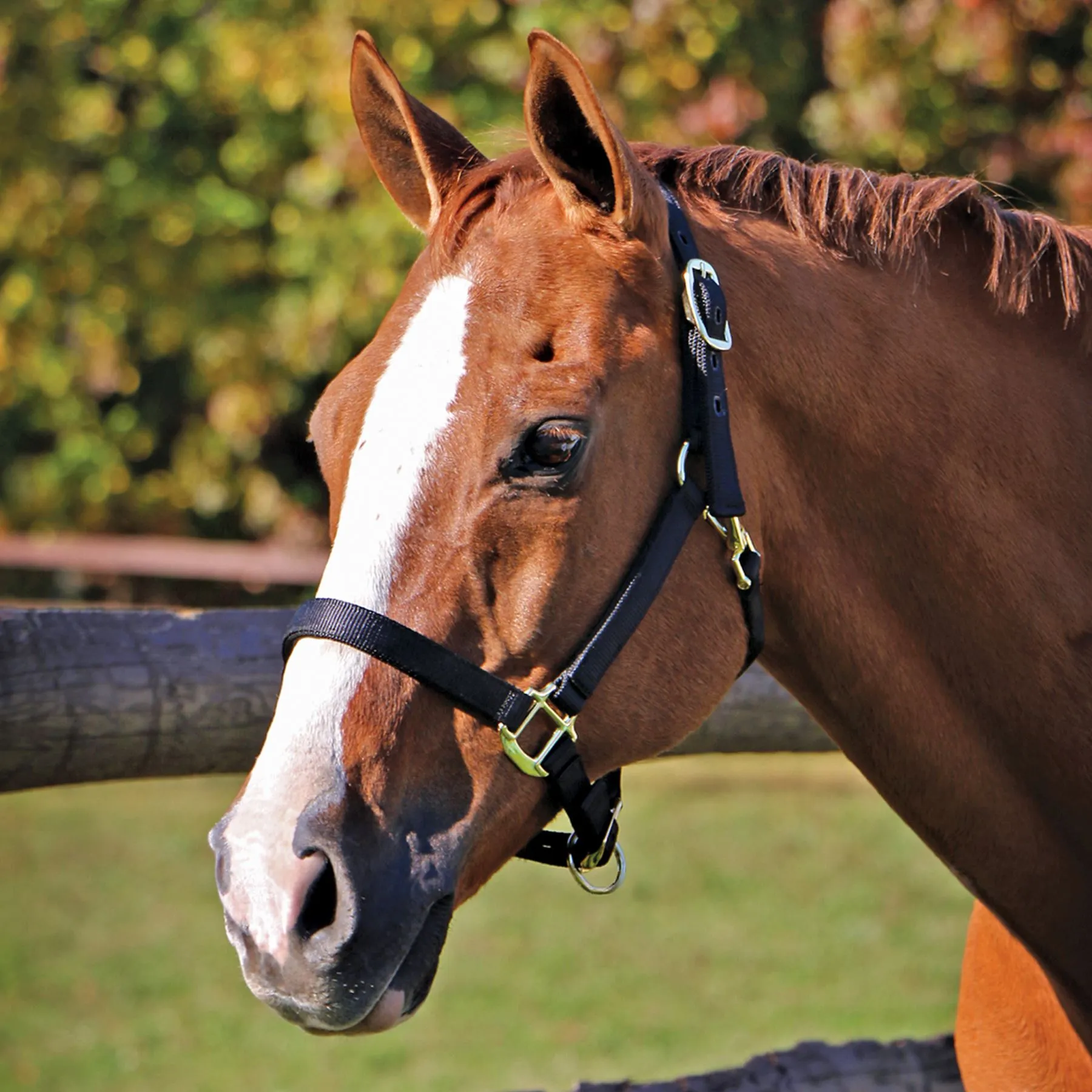 1″ triple ply, 100% nylon is extremely strong, is fray resistant, holds its color and will last for years of use and still look great! Nylon has a sleek, shiny finish that is soft on your horse’s face, great for at home use or going to the show.