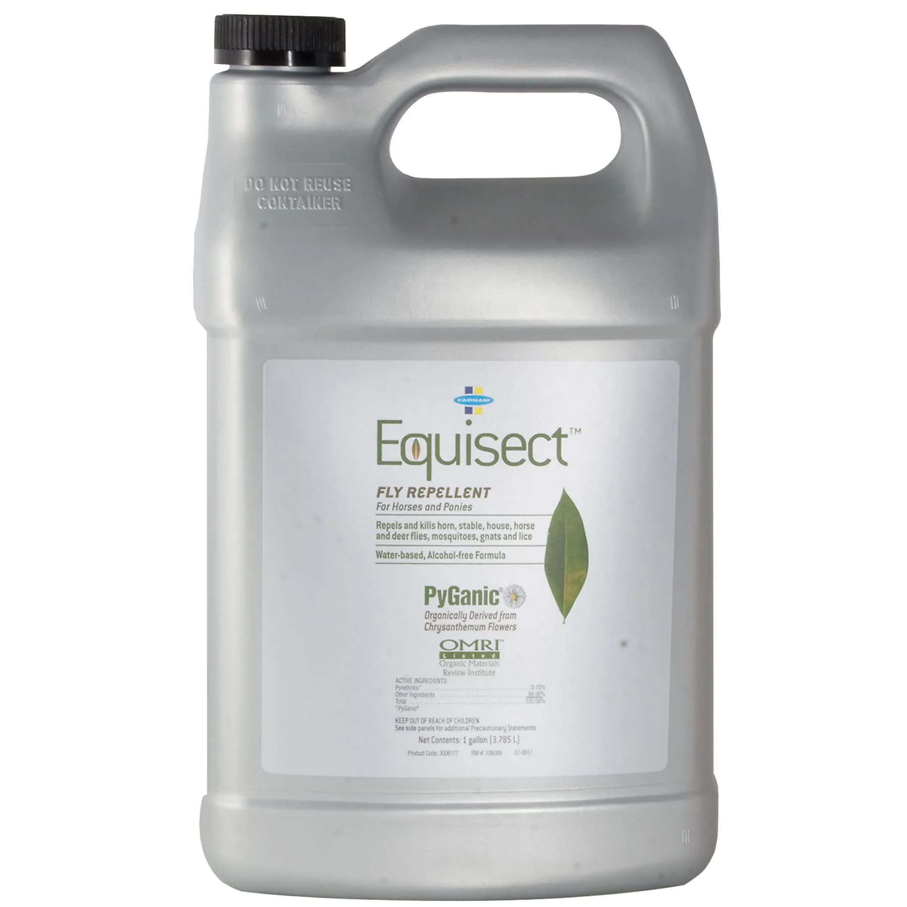 Farnam® Equisect™ Fly Repellent is an all-natural fly spray safe for horses, ponies, dogs, and even cats. It repels and kills horn, stable, horse, deer flies, mosquitos, gnats, lice and fleas, and ticks on dogs and cats. The formula is proven to outperform other leading natural fly sprays and contains the botanical repellent PyGanic®, the first pyrethrum listed by the Organic Materials Review Institute for use in organic farming, and botanical and essential oils of citronella, clove stem, thyme, and corn mint.