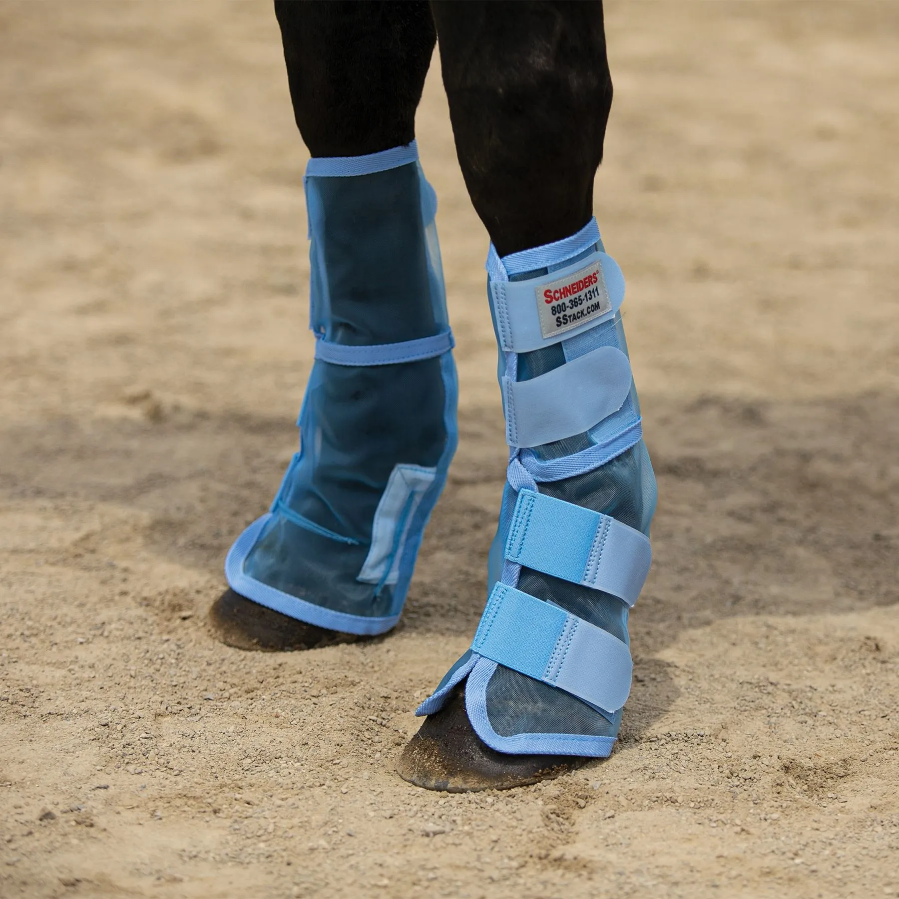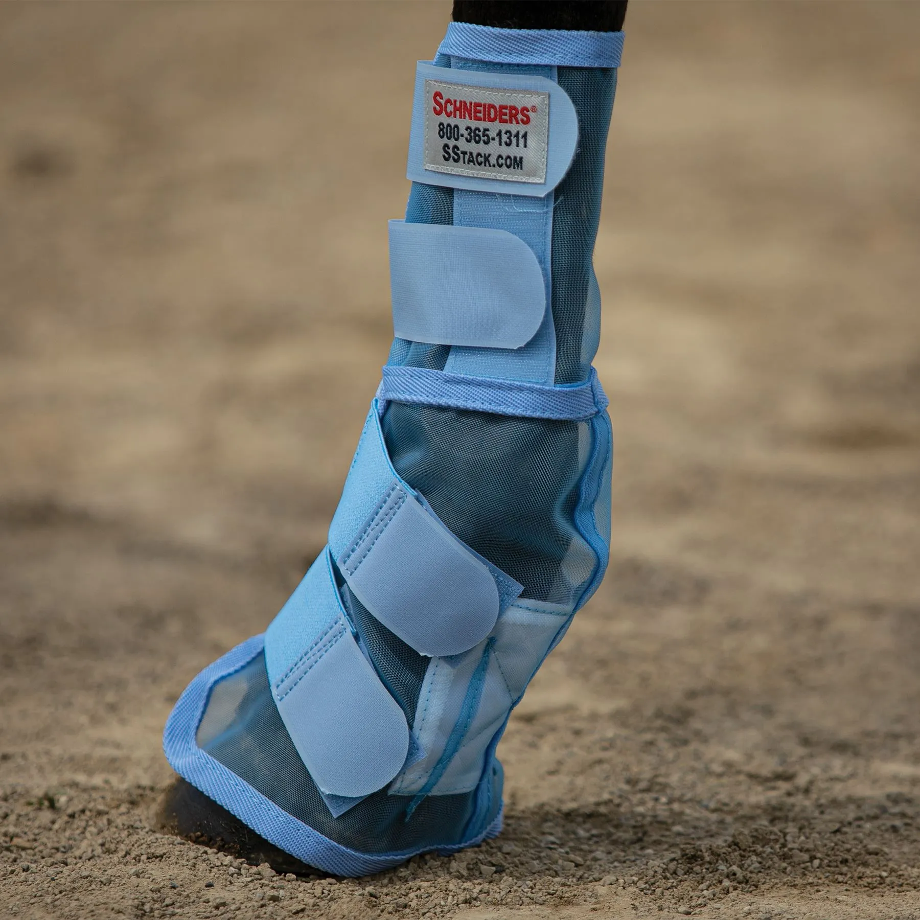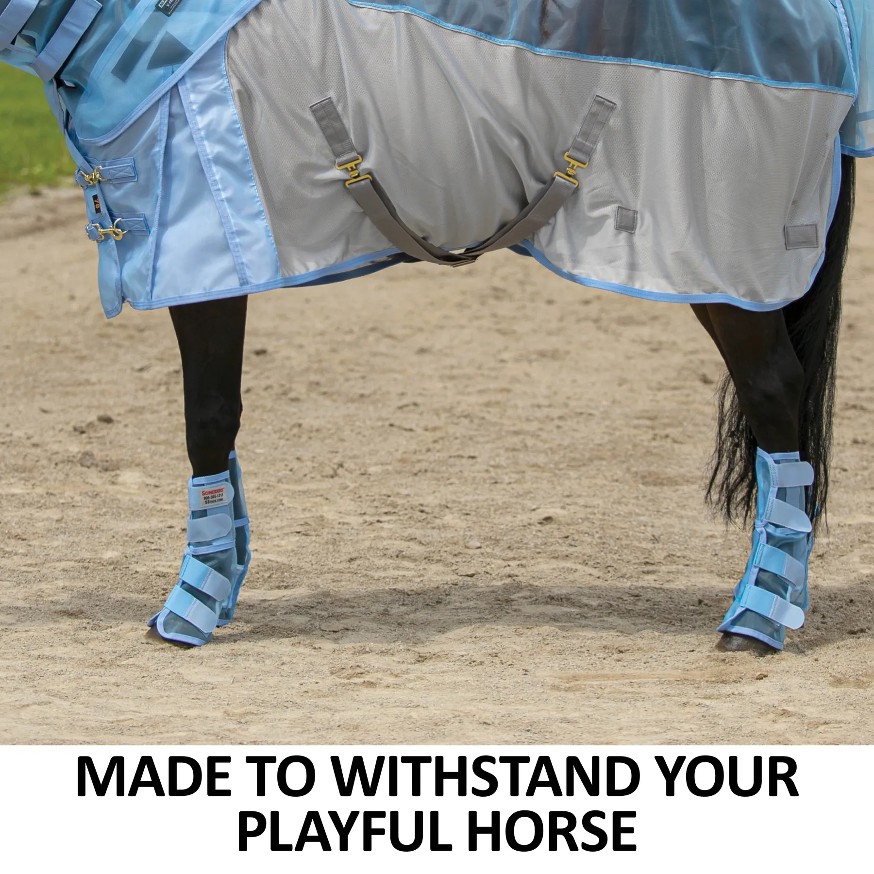 For horses that need the best insect protection for their legs, we offer the Mosquito Mesh Fitted Fly Boots that come in a set of 2. The 350D extra-fine “window screen” mesh protects your horse’s legs from flies, mosquitos, and even the tiniest bugs, like no-see-ums or gnats – reducing stomping. These mesh fly boots shield your horse from potential sun damage with 60% UV protection, allowing for better airflow. The soft web binding is shaped to fit the leg and stays in place, making it the perfect option for horses that like to step out of their boots. Don’t forget to shop the matching Mosquito Mesh Fly Sheet and Mosquito Mesh Fly Sheet Neck Cover.