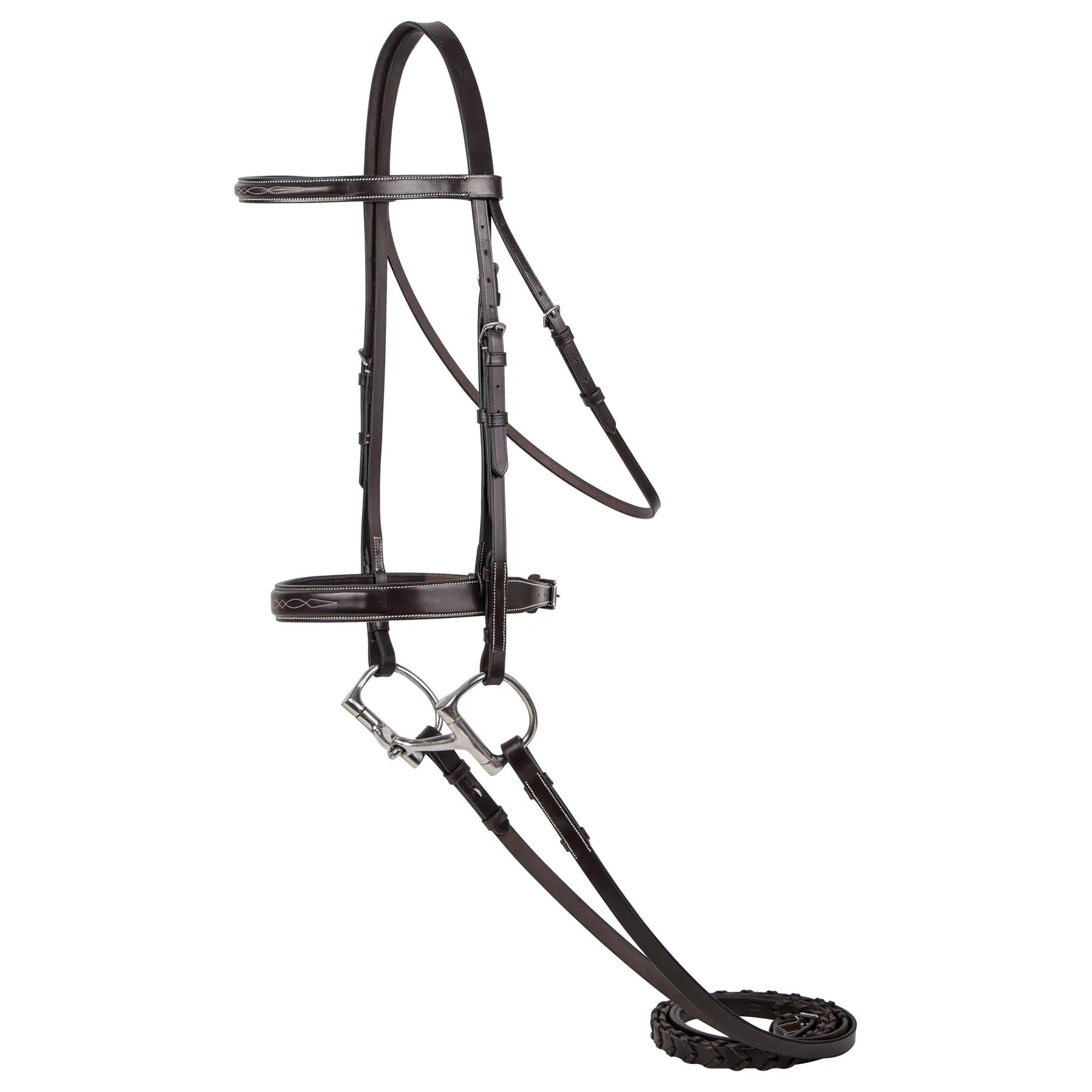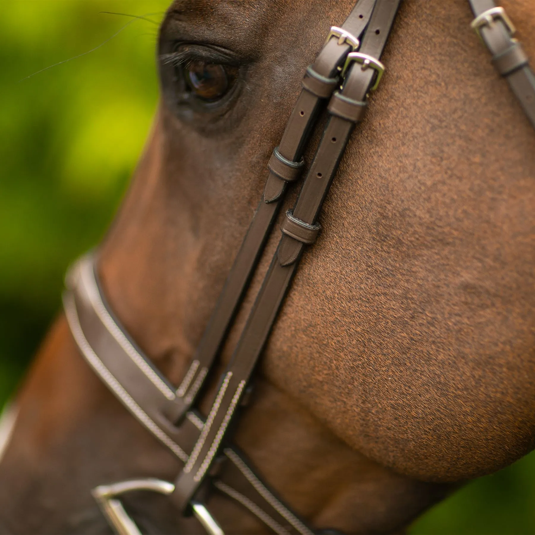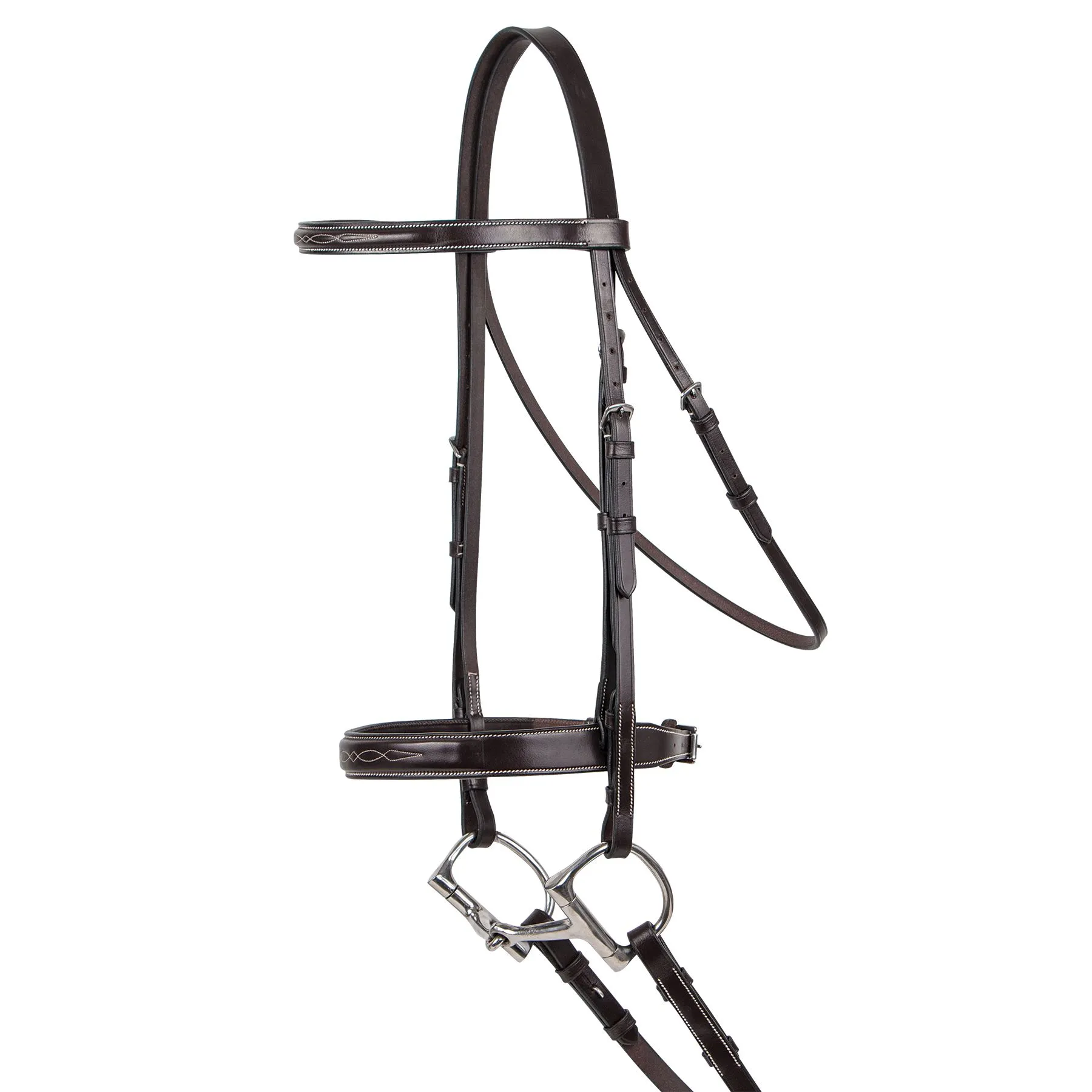 Classic, traditional design meets innovative features with the Pinnacle Hartford English Hunter Bridle. The fashionable square with raised accents across the nose and brow distinguishes this bridle. It’s handcrafted from the finest imported, hand-oiled leather in the English tradition, making a classy hunter bridle perfect for schooling to the show ring.