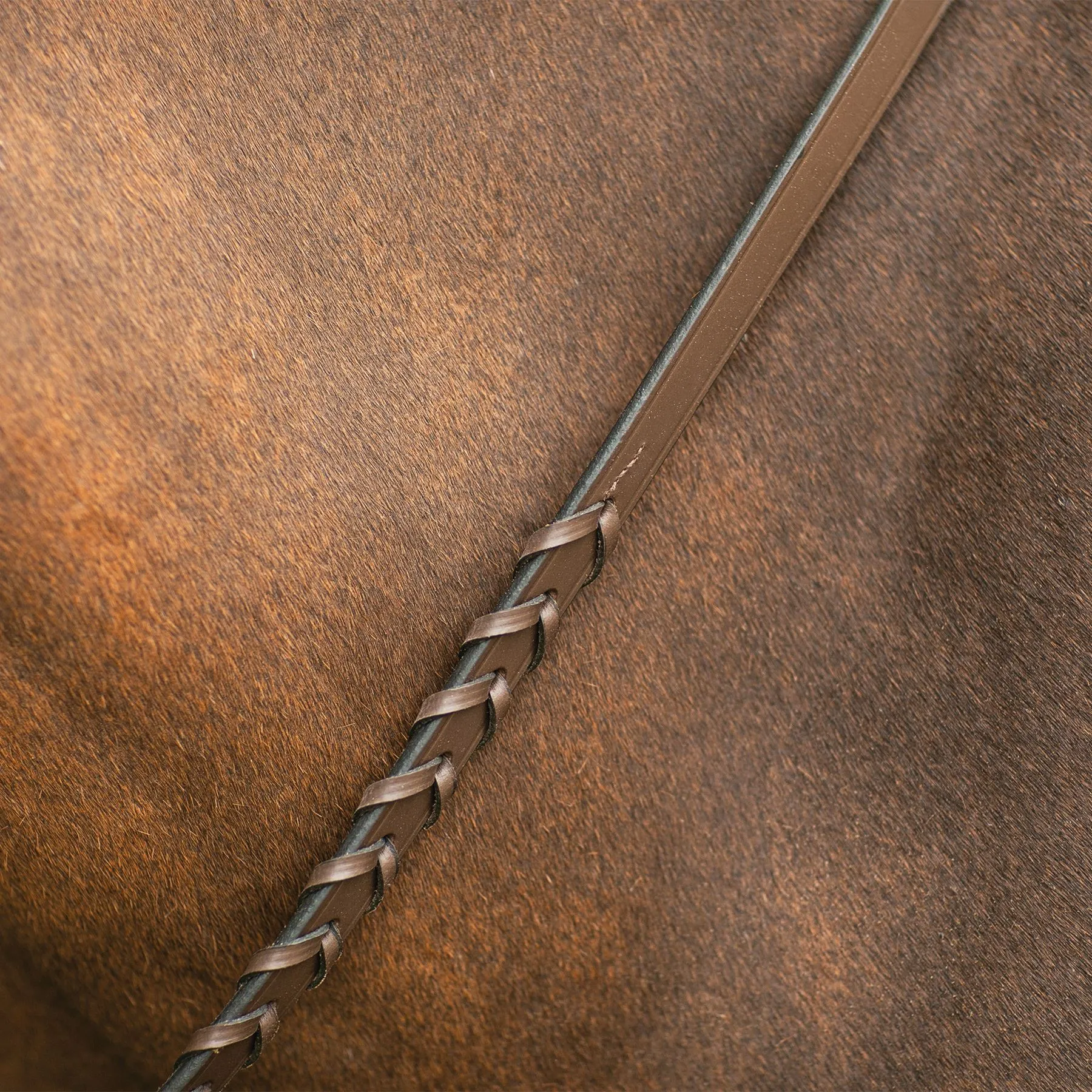 - Traditional, plain leather crown with 1/2″ cheeks and 3/8″ hanger and throatlatch