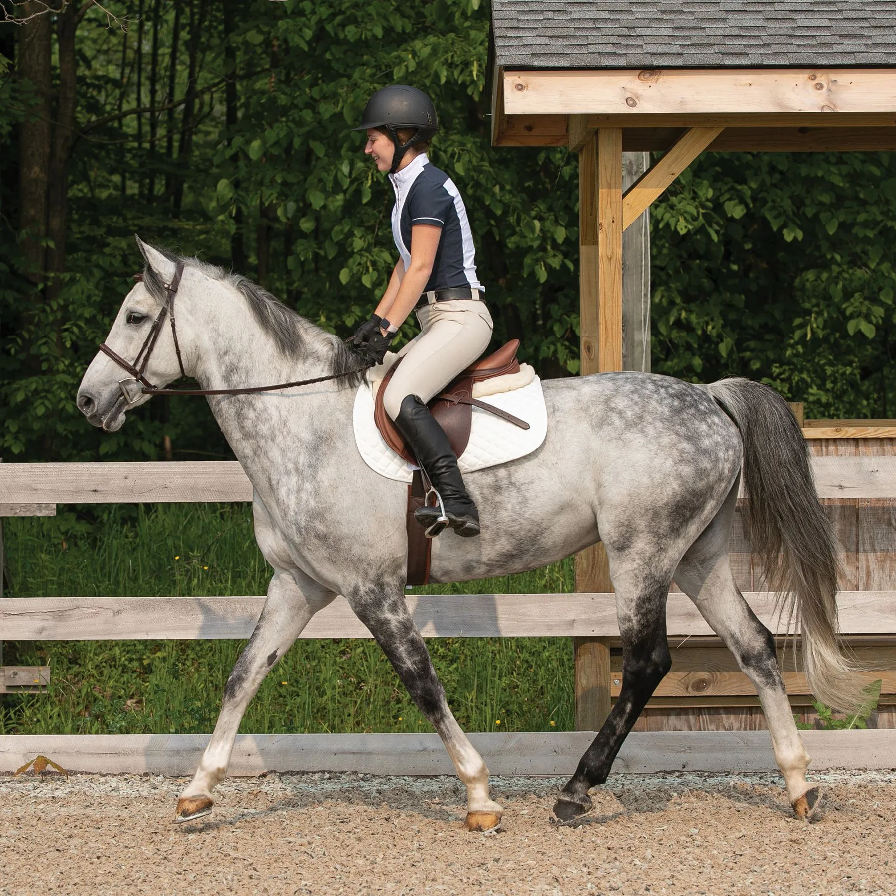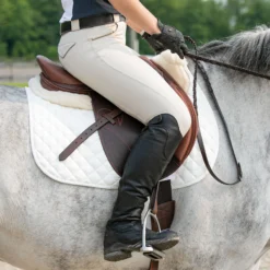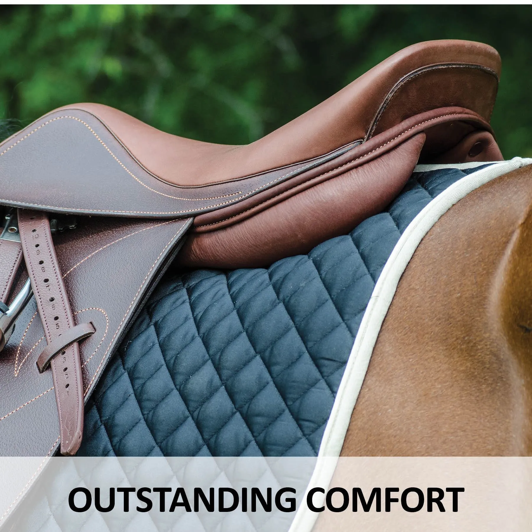 - Close contact feel with padded French calf knee rolls