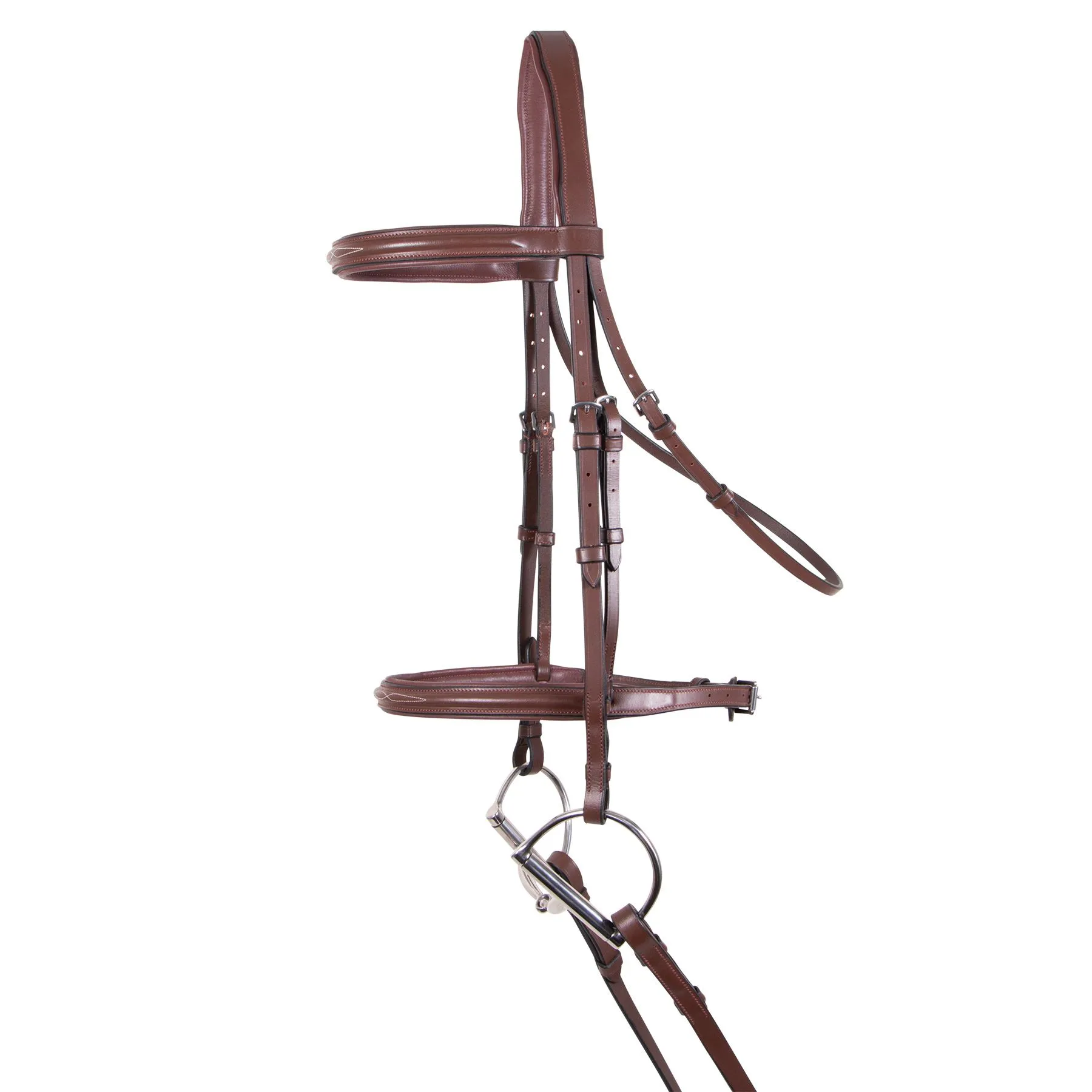 Pinnacle leather goods are hand crafted in the British tradition. Created from the finest leather from Australia, Argentina, and Europe; Pinnacle tack is comfortable and durable. All Stainless-steel hardware padded, and fancy stitched for a traditional style. Includes extra-long 5/8″ x 64″ laced reins.