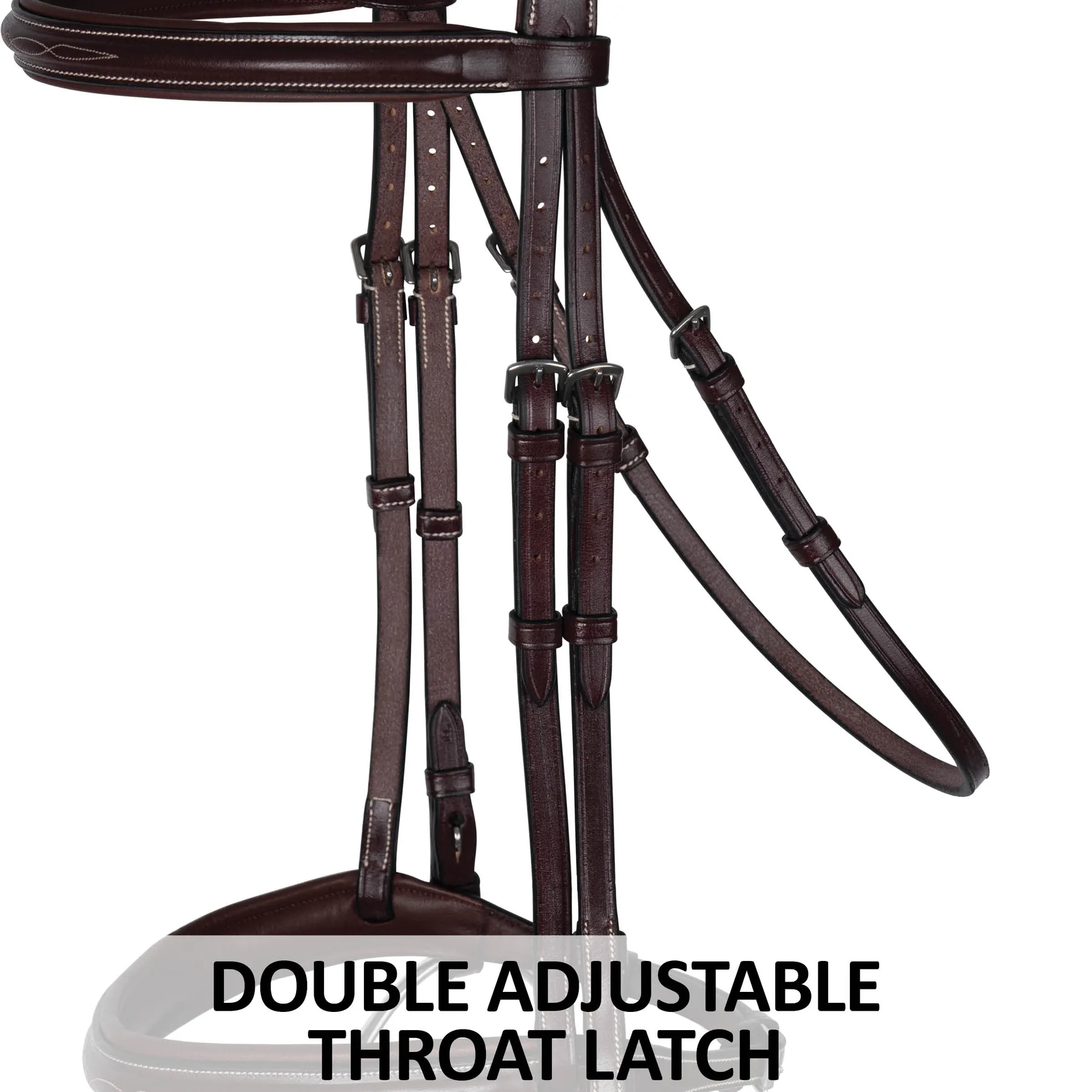 - Double adjustable throat latch for a custom fit